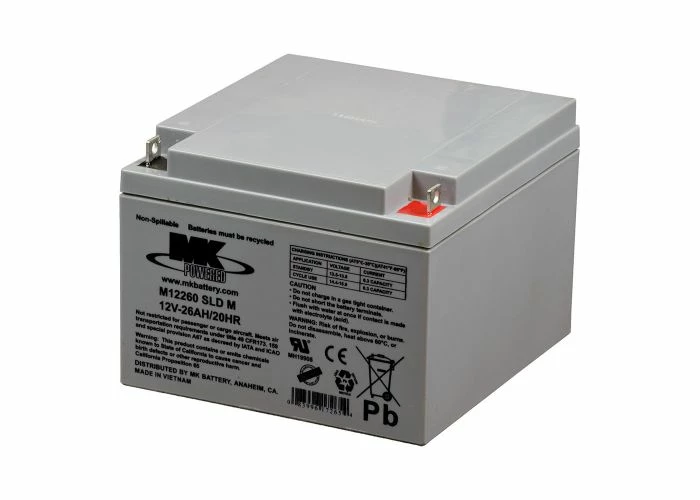 MK M12260 SLD M Batteries are completely maintenance free. Sealed construction eliminates periodic watering, corrosive acid and spills. Increased durability and deep cycle ability for heavy demand applications. Little deterioration during transport and storage. Transports easily and safely by air.