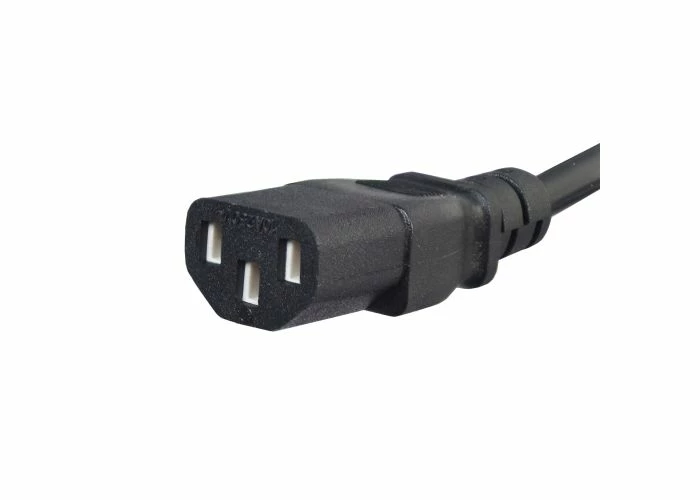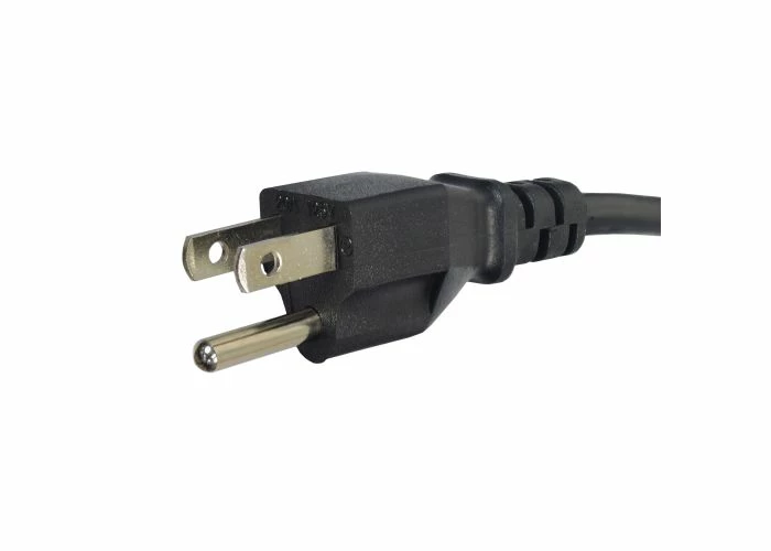 3-pin shroud female (IEC C13) to 3-prong grounded male plug. Female connector plugs directly into device and male connector plugs into standard outlet.