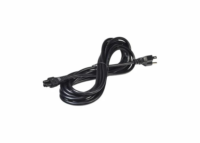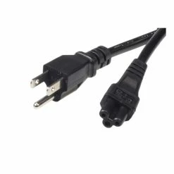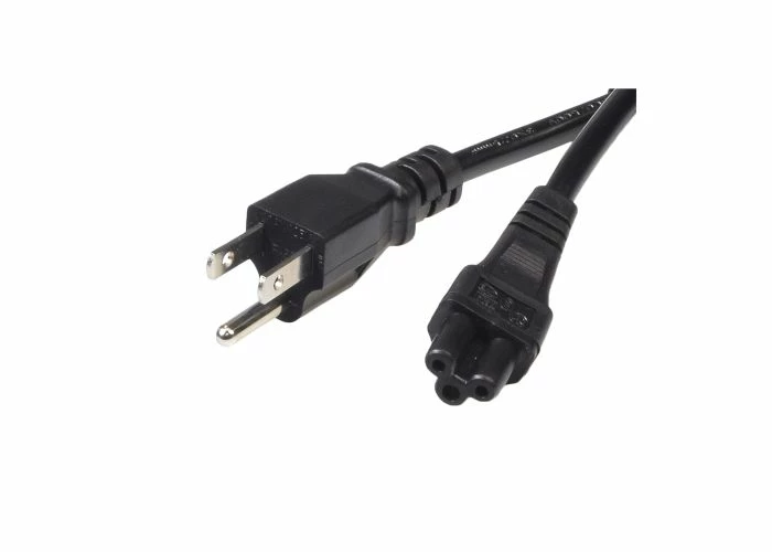 IEC C5 “Mickey Mouse” connector on the charger end, 3-prong household connector on the outlet end