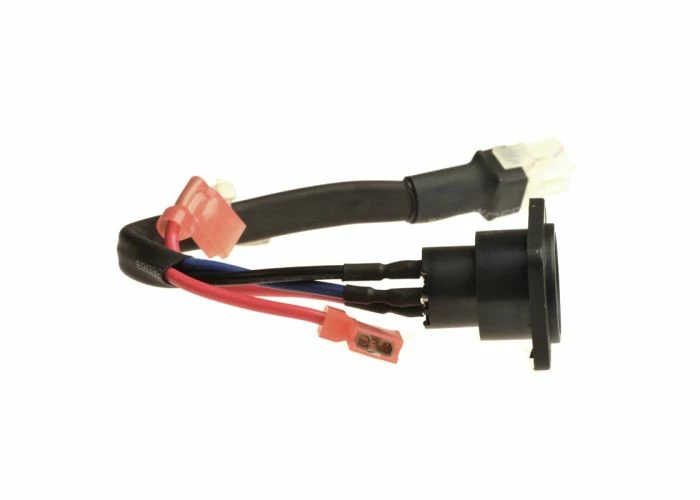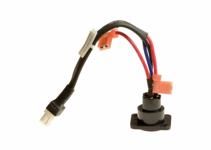 The XLR charging port with harness for the Pride Travel Pro (S36) mobility scooter is a quick and easy replacement