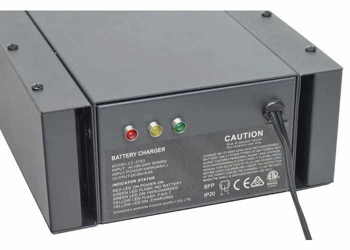 A premium quality 36-volt battery charger is suitable to use on sealed lead acid (SLA) batteries and features multiple LEDs to indicate the battery charge level. The automatic shut off turns the charger off when the charging cycle charging is complete.
