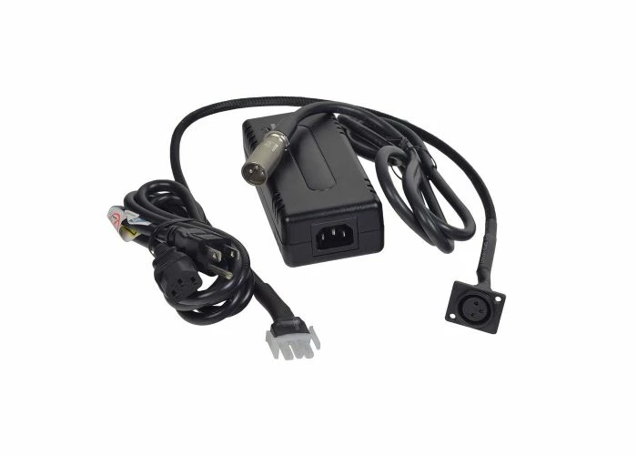 Our onboard charger kit is equipped with an XLR connector as well as an onboard 3-pin adapter. This 3-pin adapter is identical to the 3-pin connector that is used on Pride onboard battery chargers. Using the 3-pin adapter, it can be used as an onboard battery charger.